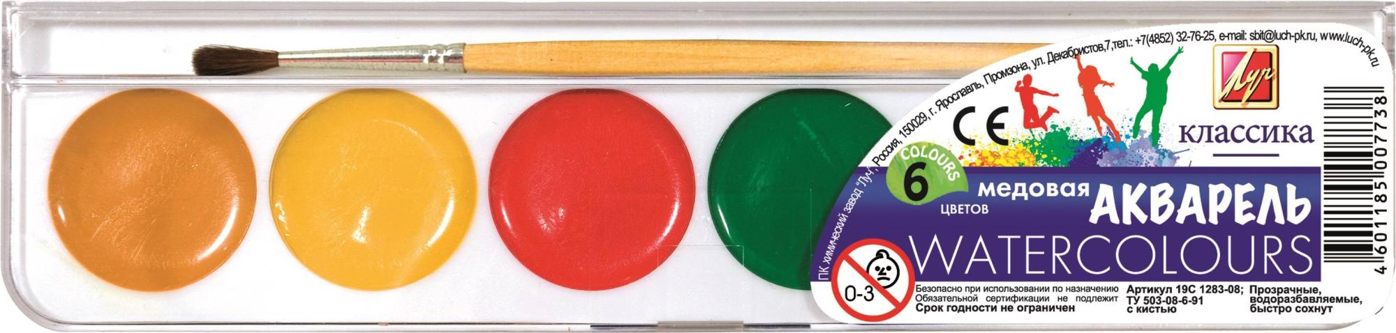 Акварель КЛАССИКА 6 цветов, пластиковая упаковка с кистью — прекрасный выбор для начинающих и профессионалов. Современные нетоксичные материалы хорошо ведут себя в эксплуатации, помогут вам добиться успеха в творчестве.