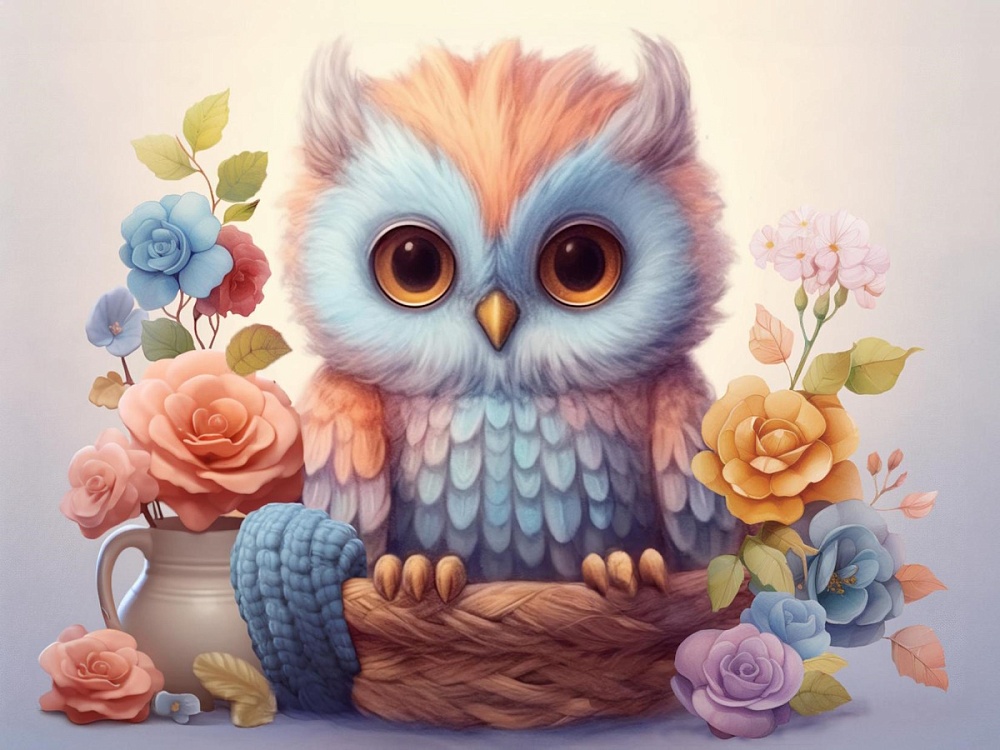 Алмаз мозаика (класс.) 30х40 см, без подр., с полн. заполн.(30цв) Пушистая сова