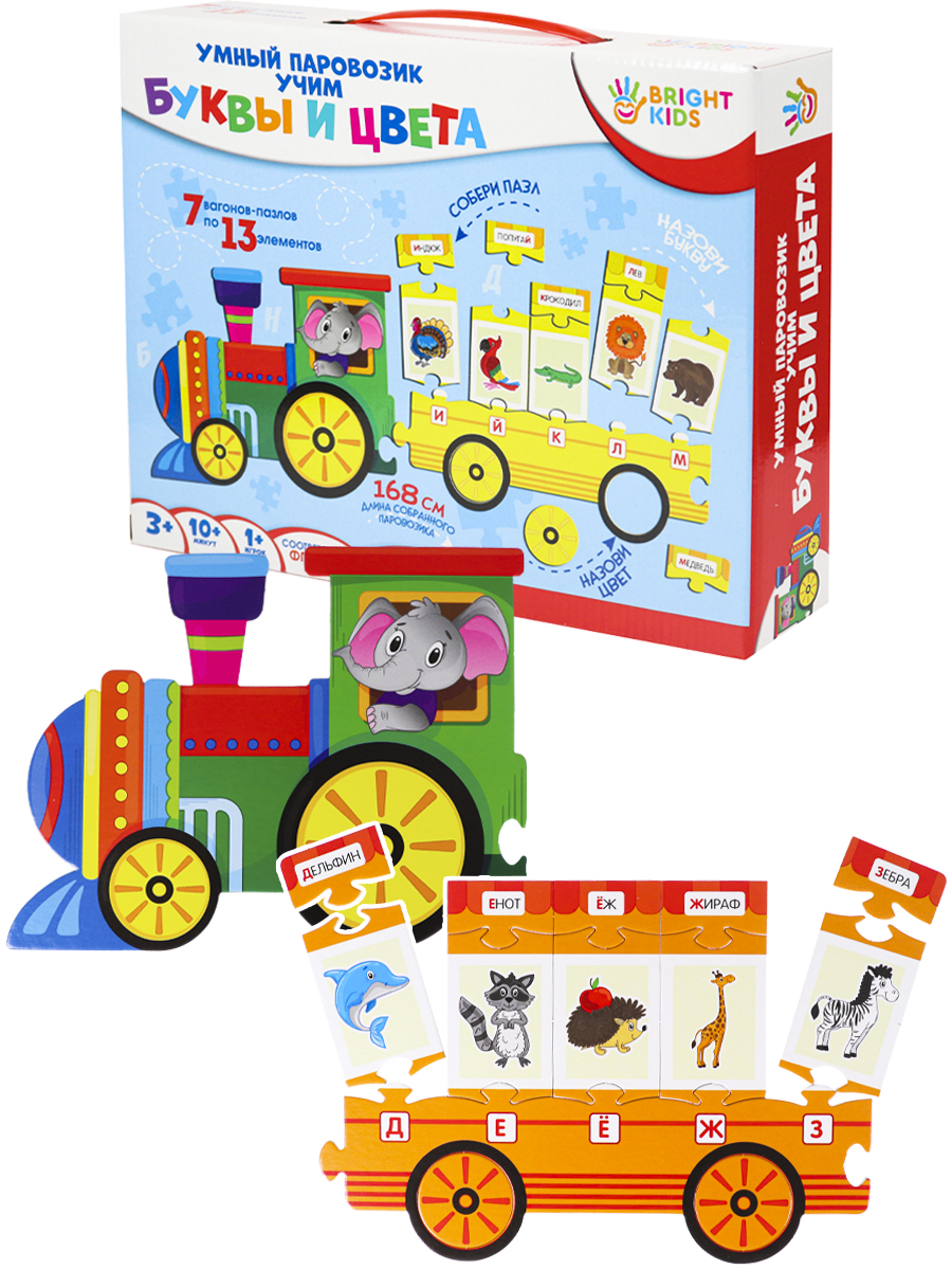 BRIGHT KIDS. Умный паровозик. УЧИМ БУКВЫ И ЦВЕТА