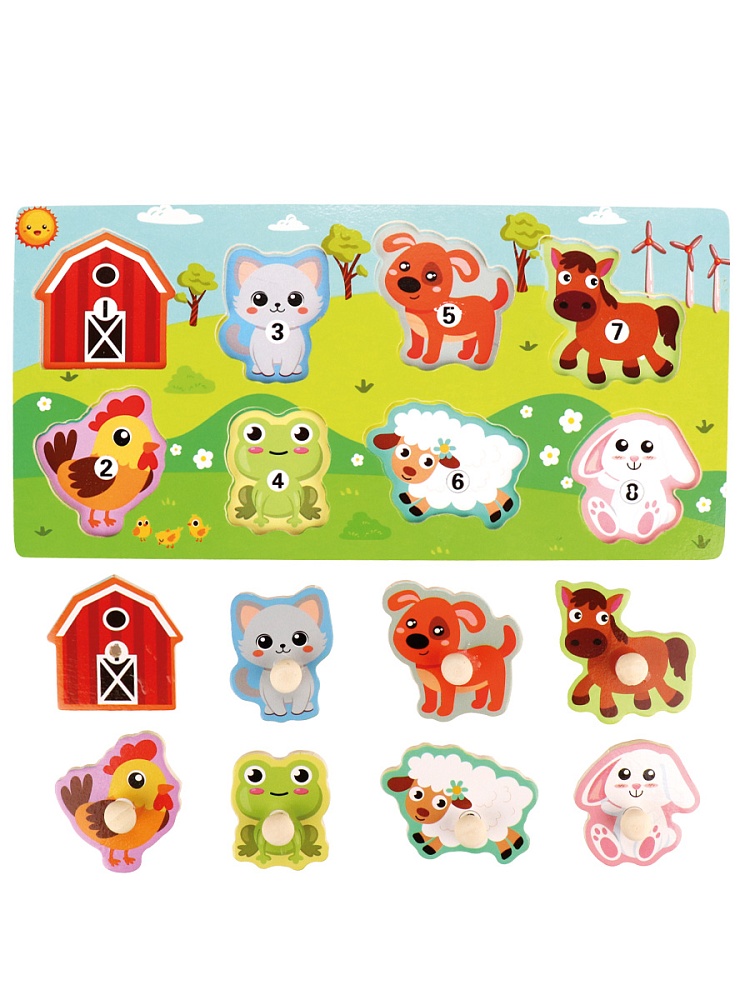 Деревянная игрушка. Рамка-вкладыш "Животные деревни-2" (30x15x0,5 см)