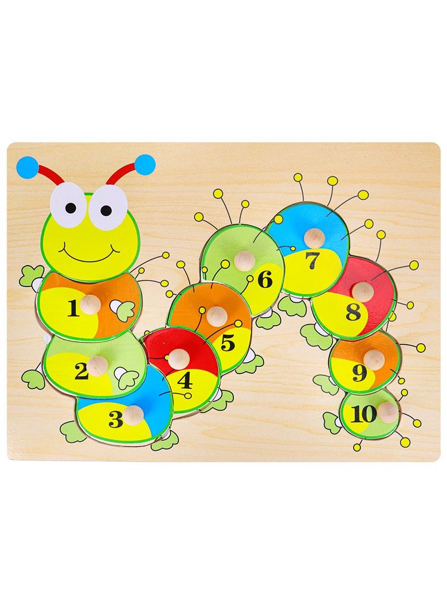 Деревянная рамка-вкладыш (21х29,5) "СЧИТАЕМ С ВЕСЁЛОЙ ГУСЕНИЦЕЙ"