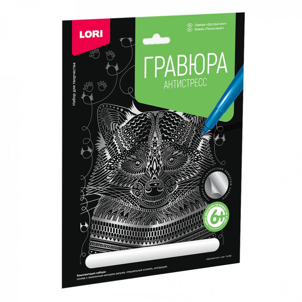 Гравюра Антистресс большая с эффектом серебра "Шустрый енот"