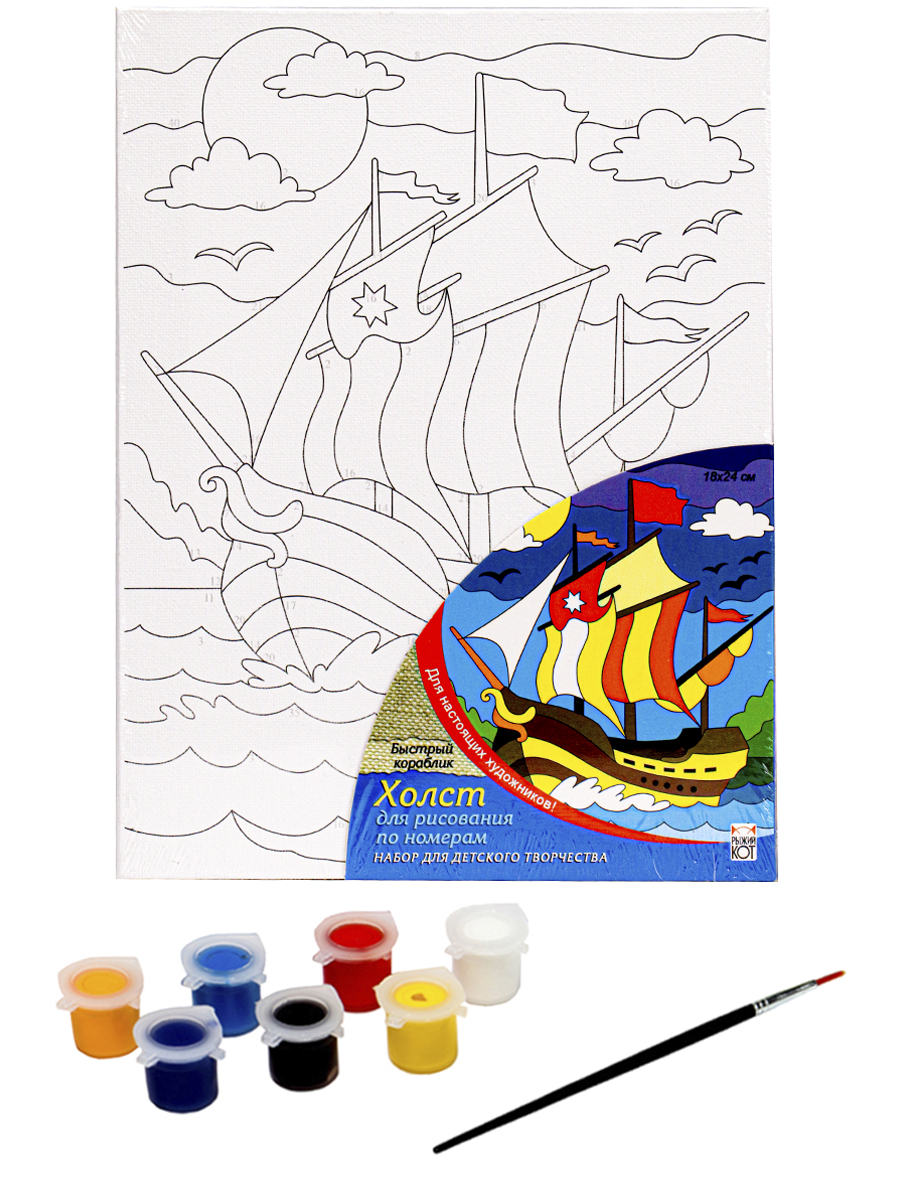 Холст с красками 18х24 см по номерам. БЫСТРЫЙ КОРАБЛИК