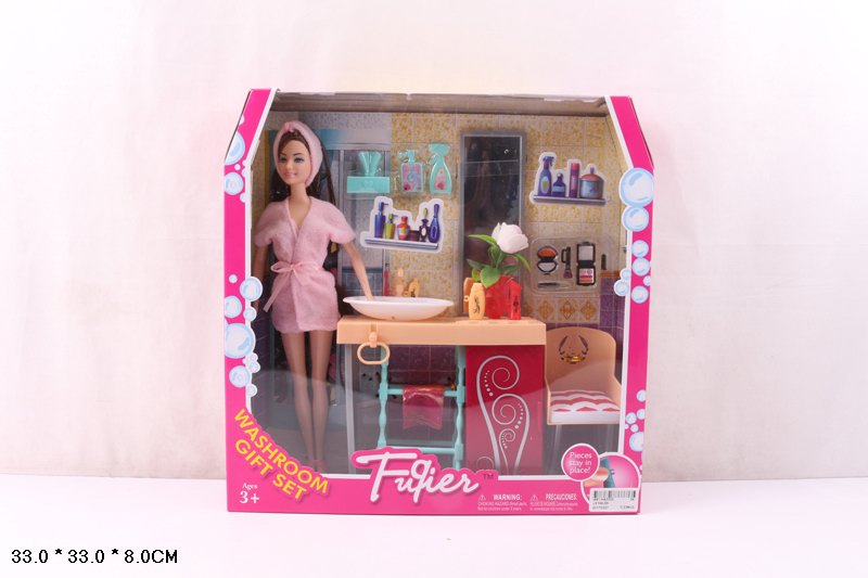 Кукла в халате в ванной комнате