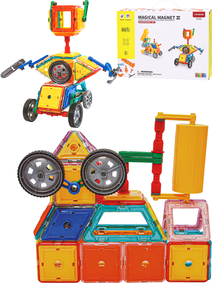 Магнитный конструктор "Роботы" (37х26х6,5 см)(80 деталей, в коробке)