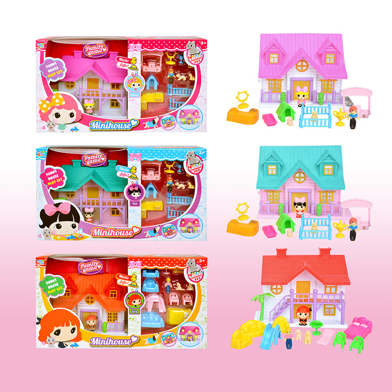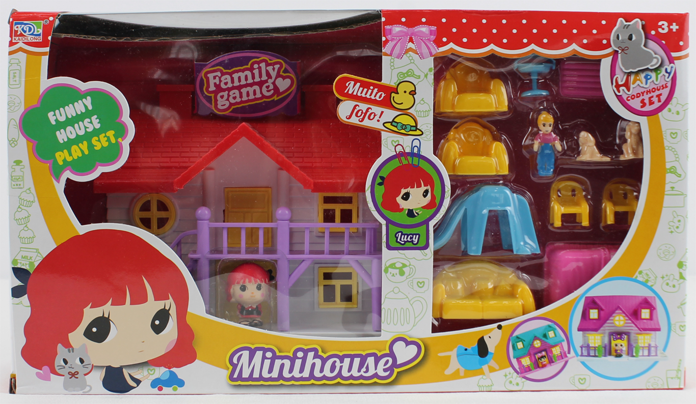 Минидомик с мебелью и фигурками в коробке