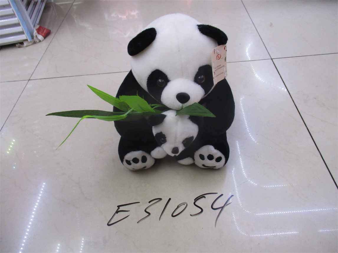Мягкая игрушка Панда с детёнышем и листьями бамбука 25см.