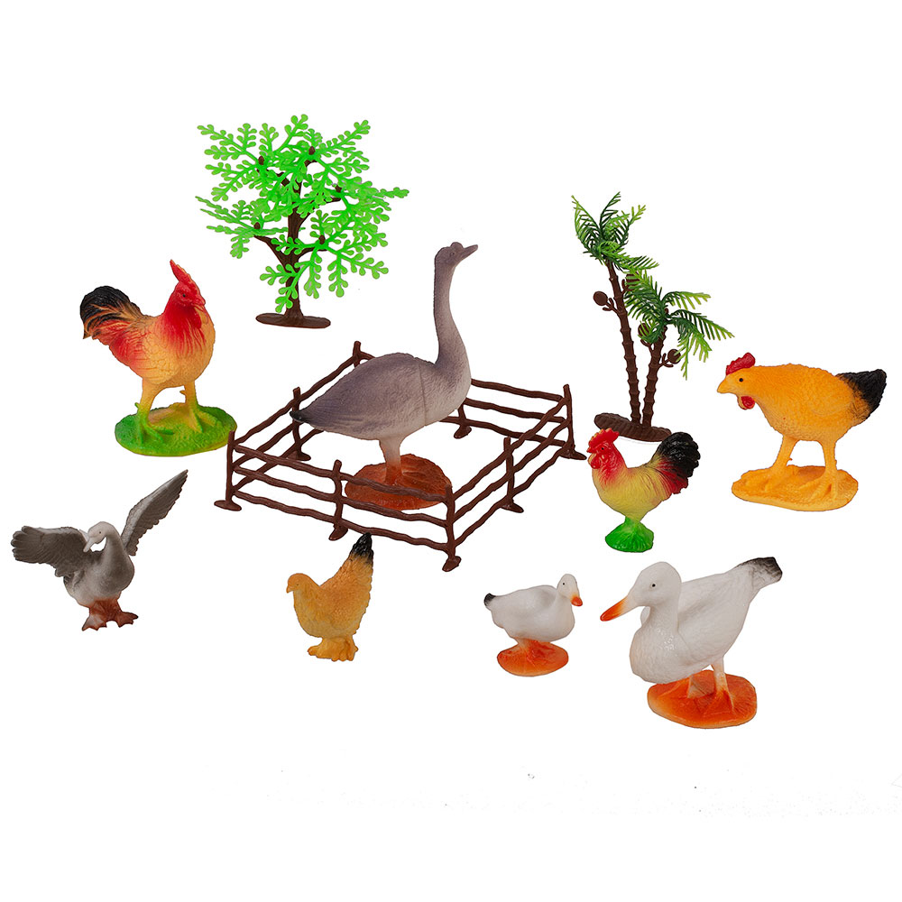 Комплектация: 8 фигурок животных, 4 элемента забора, 2 растения.