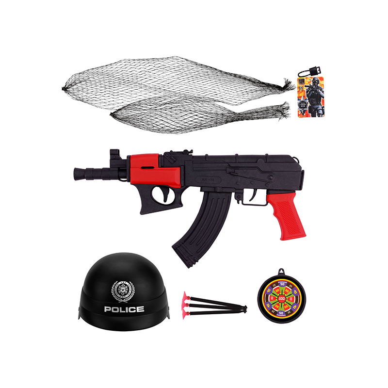 Набор полицейского с каской и оружием в сетке