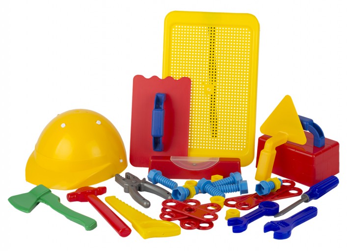 каска, мастерок, сито, терка, уровень, ножовка, топор, молоток, форма кирпич,