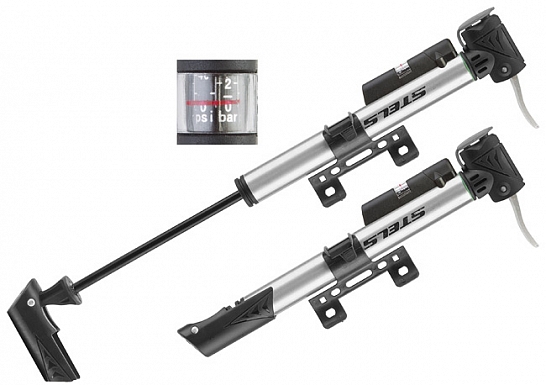 Насос ZF-024A ручной алюминиевый с манометром, двойной вентиль, чёрно-серебристый
