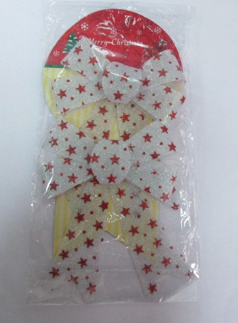 Новогодний Бант 2шт. 5663 белый со звёздами на картоне 16*13см 2/С