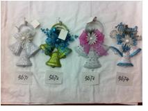 Новогодняя Подвеска новогодняя 3 колокольчика с белым цветком и надписью 23см.