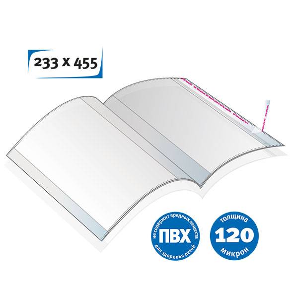 Обложка д/уч. ПВХ 120 мкм schoolФОРМАТ 233х455 мм унив. клеевой край 50 шт индив. штрих-код