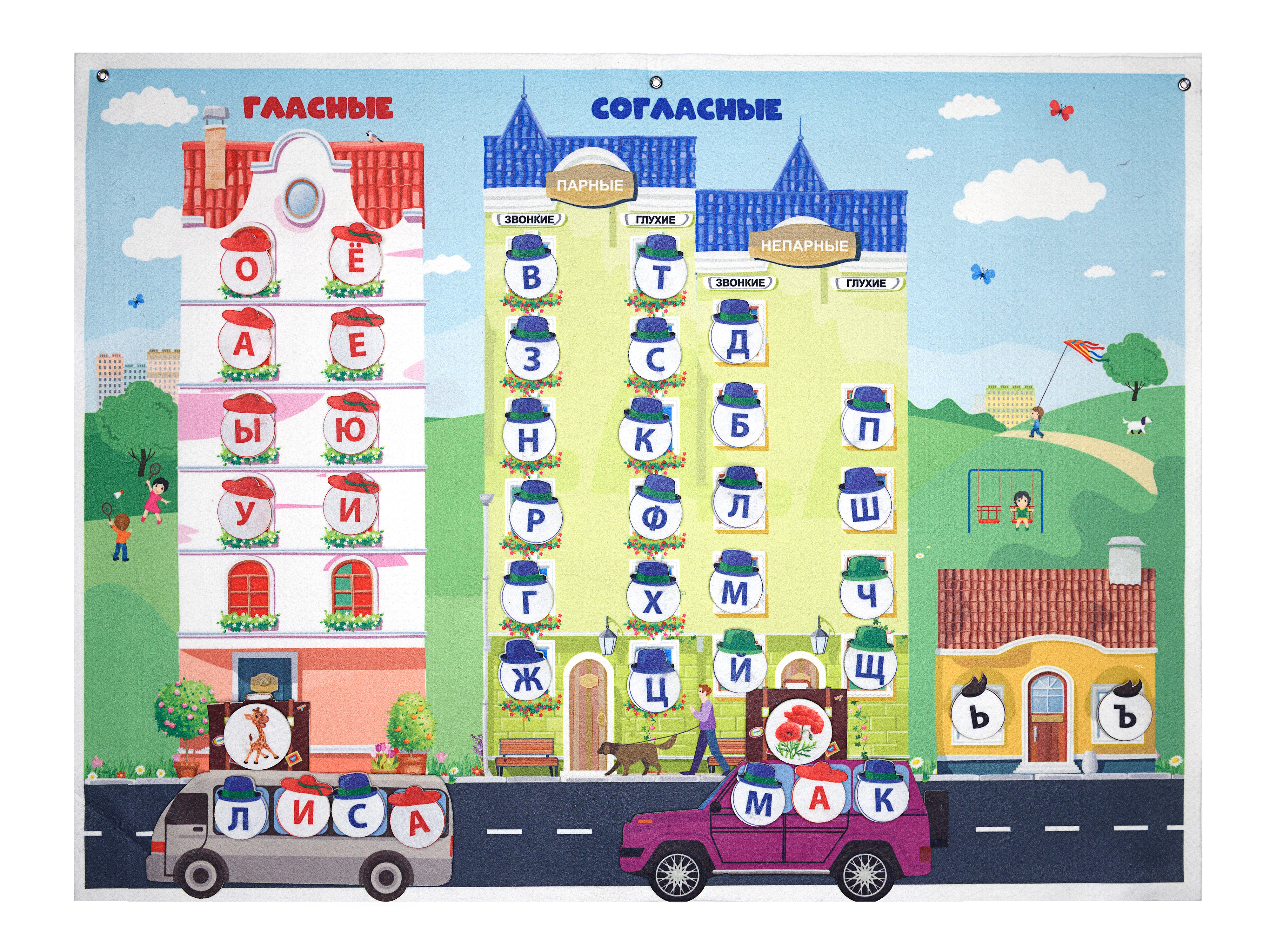 Панно "Сказочный город букв" (103дет + 7 машинок)