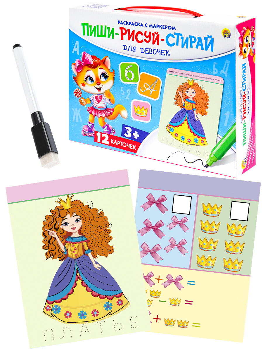 ПИШИ-РИСУЙ-СТИРАЙ. ДЛЯ ДЕВОЧЕК (Новая коробка)