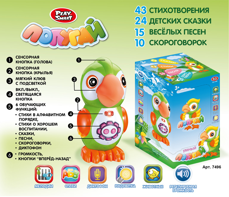 Питомец 7496 Попугай в кор.интерактив. B380-H05004