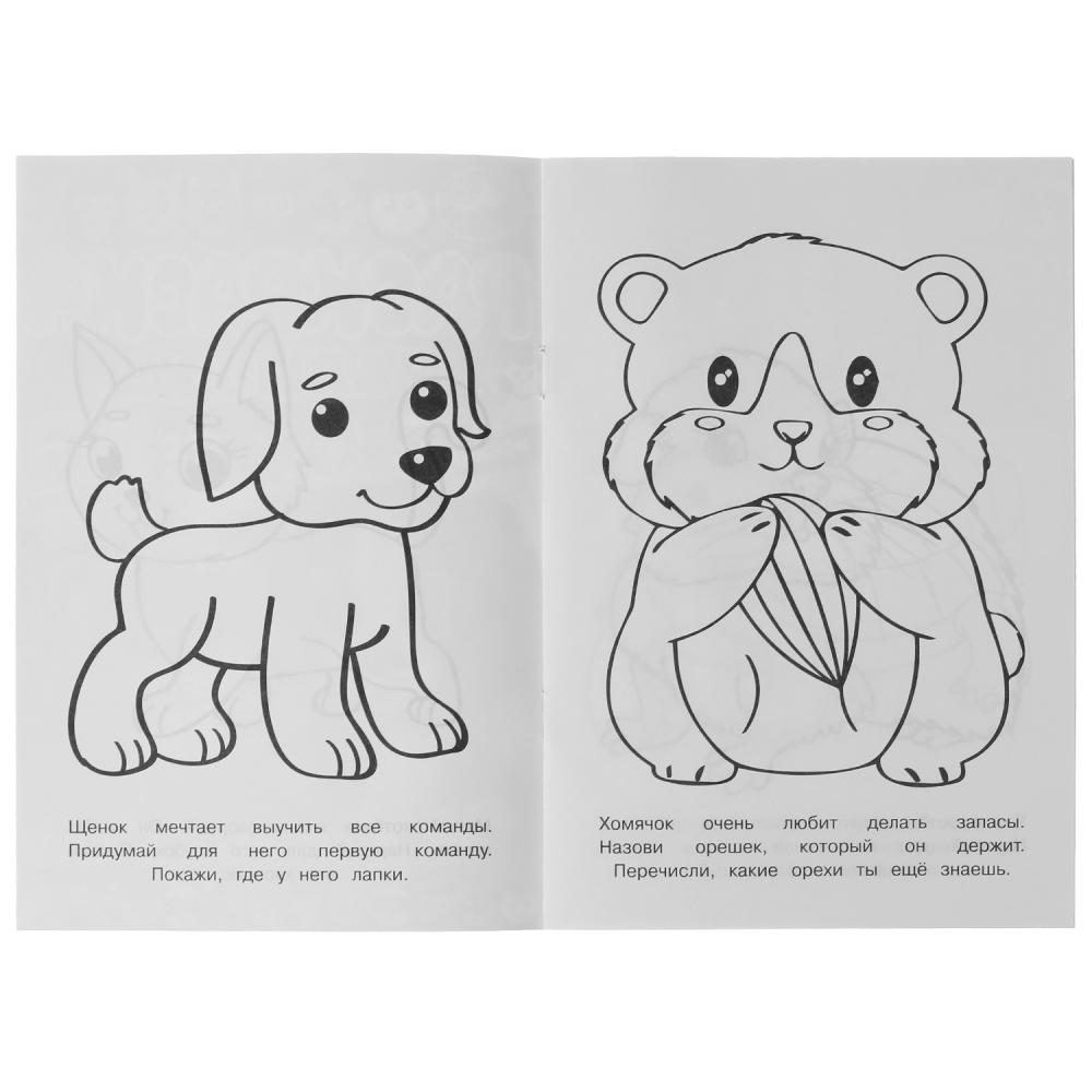 На страницах этой занимательной раскраски ребёнок найдёт иллюстрации с изображением милых животных и задания к ним. Раскрашивая интересные картинки с чётким контуром, он научится не выходить за границу рисунка, а увлекательные задания помогут развить логику и внимание. Благодаря небольшому формату раскраску удобно брать с собой в дорогу.