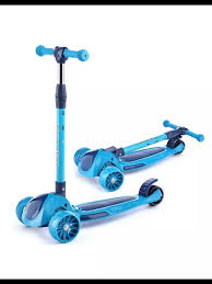 Самокат 3-х кол., голубой, светящиеся колёса, PU, ABEC 7, в коробке