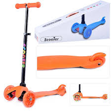 Самокат 3-х кол., оранжевый, светящиеся колёса, PU, ABEC 7, в коробке
