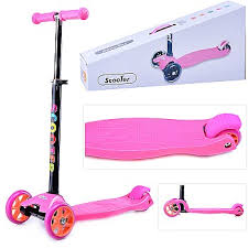 Самокат 3-х кол., розовый, светящиеся колёса, PU, ABEC 7, в коробке