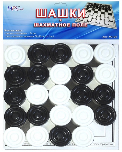 Шашки пластиковые с шахматным полем (картон) в пакете с европодвесом