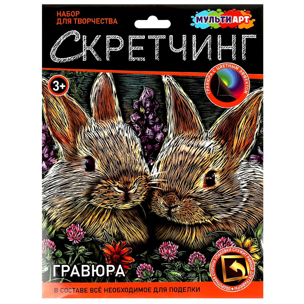 Скретчинг гравюра 18*24 см кролики
