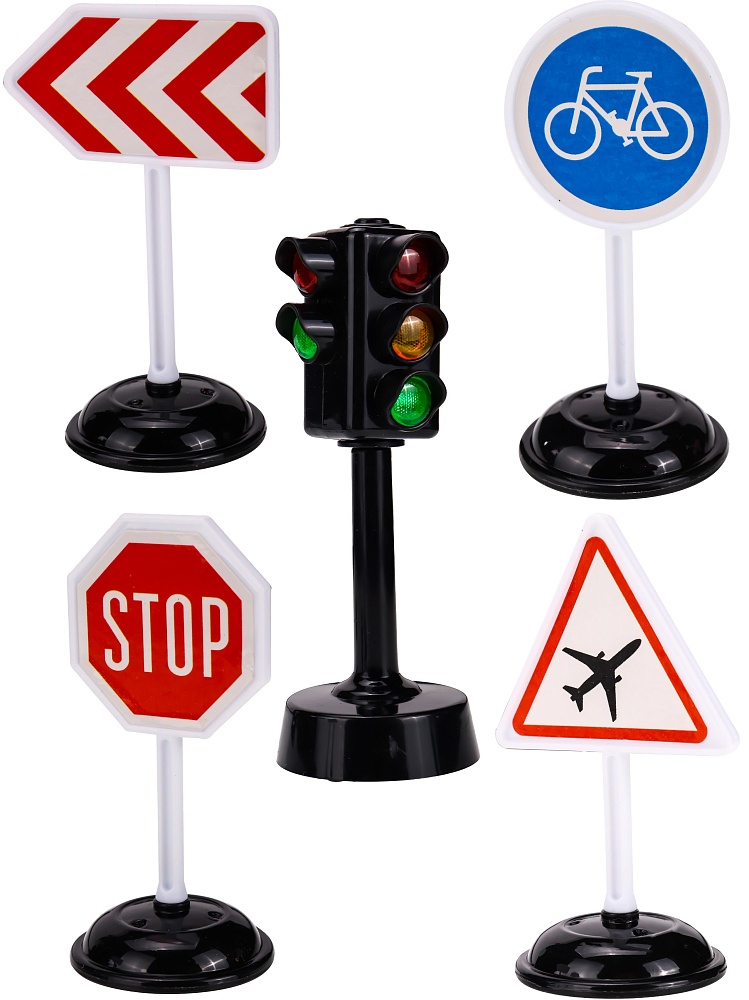 Светофор, дорожные знаки в наборе (5 предметов, 3*AG3 в комплекте)