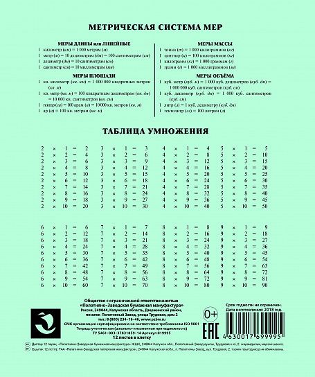 Тетрадь 12 л. кл. ПЗБМ тетрадная обложка