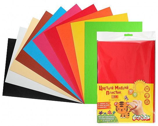 Цветная пористая резина EVA фоамиран А4 10 цв.