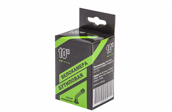 Велокамера 10" x 2.0 согнутый автовентиль, в индивидуальной упаковке