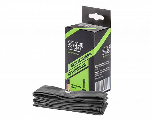 Велокамера 27.5"x2.125" автовентиль, с гайками и шайбой для крепелния вентиля к ободу, в индивидуаль