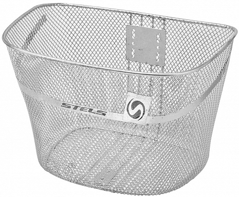 Велокорзина JL-044-4 передняя для дорожных велосипедов 28", сталь. серебр., крепл. за проушины вилки