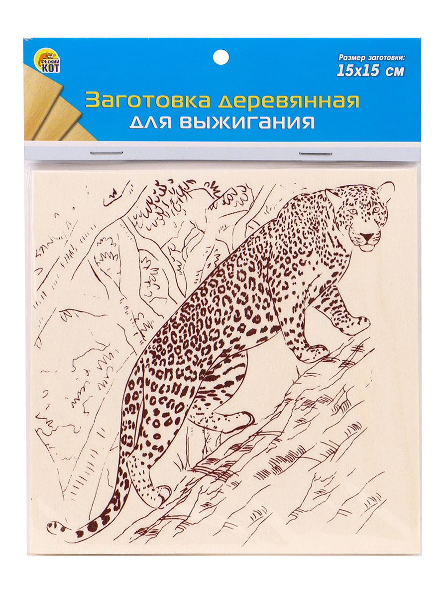 Заготовка деревянная для выжигания. 15х15 см. ЛЕОПАРД