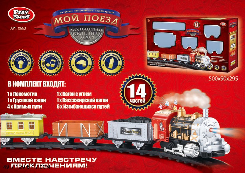 Железная дорога 0663 в кор.свет,звук,дым, 14пр на бат.