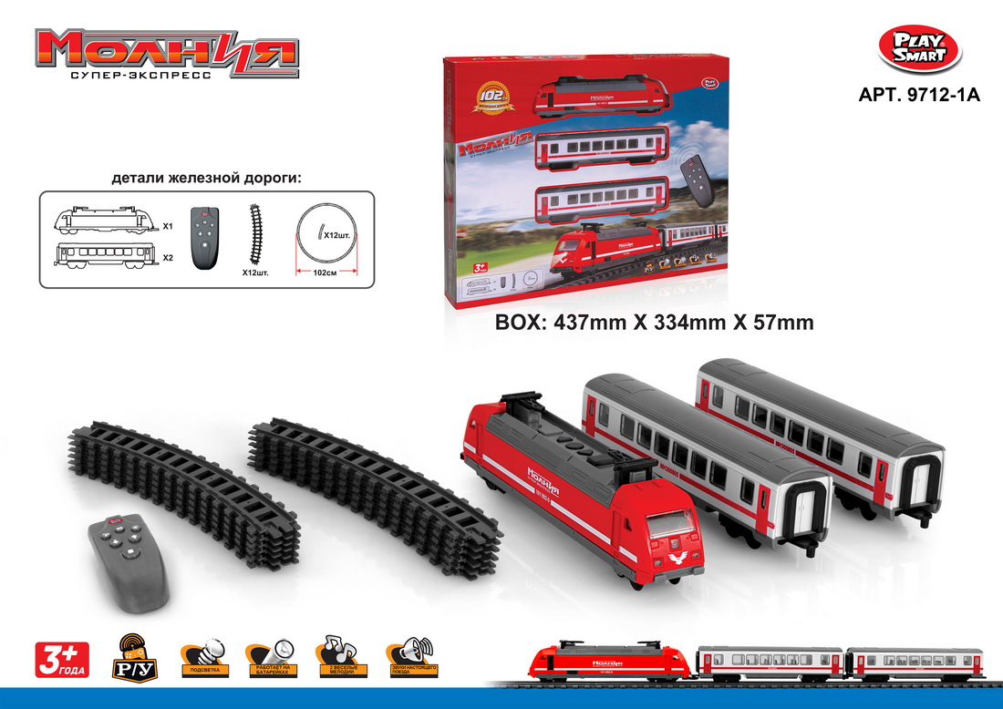 Железная дорога мет,зв,св,объяв, в коробке на радио управлении с с аккумулятором