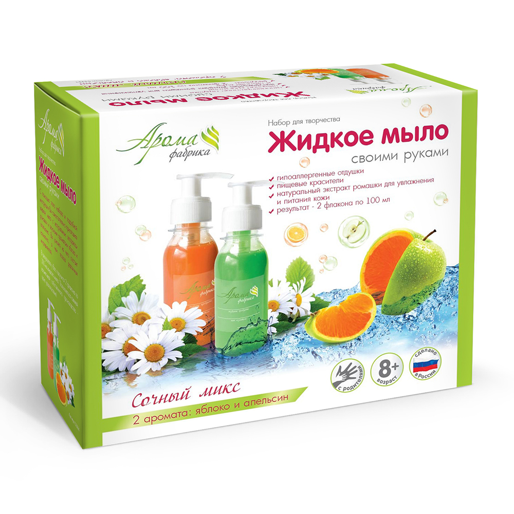 С помощью данного набора дети смогу сделать своими руками ароматное жидкое мыло. Им предстоит провести настоящие эксперименты, смешивая ингредиенты между собой. В итоге проведенных опытов ребенок получит два вида превосходного жидкого мыла с разными ароматами – сочного зеленого яблока и сладкого апельсина. Возраст: от 8 лет